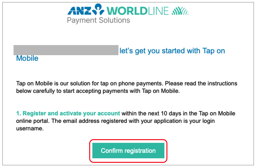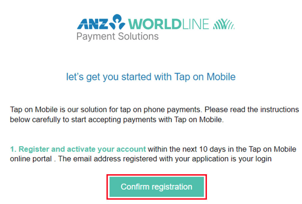 Before you begin, you must have applied and been approved for a Tap on Mobile Merchant Facility with ANZ Worldline Payment Solutions.