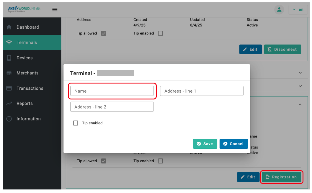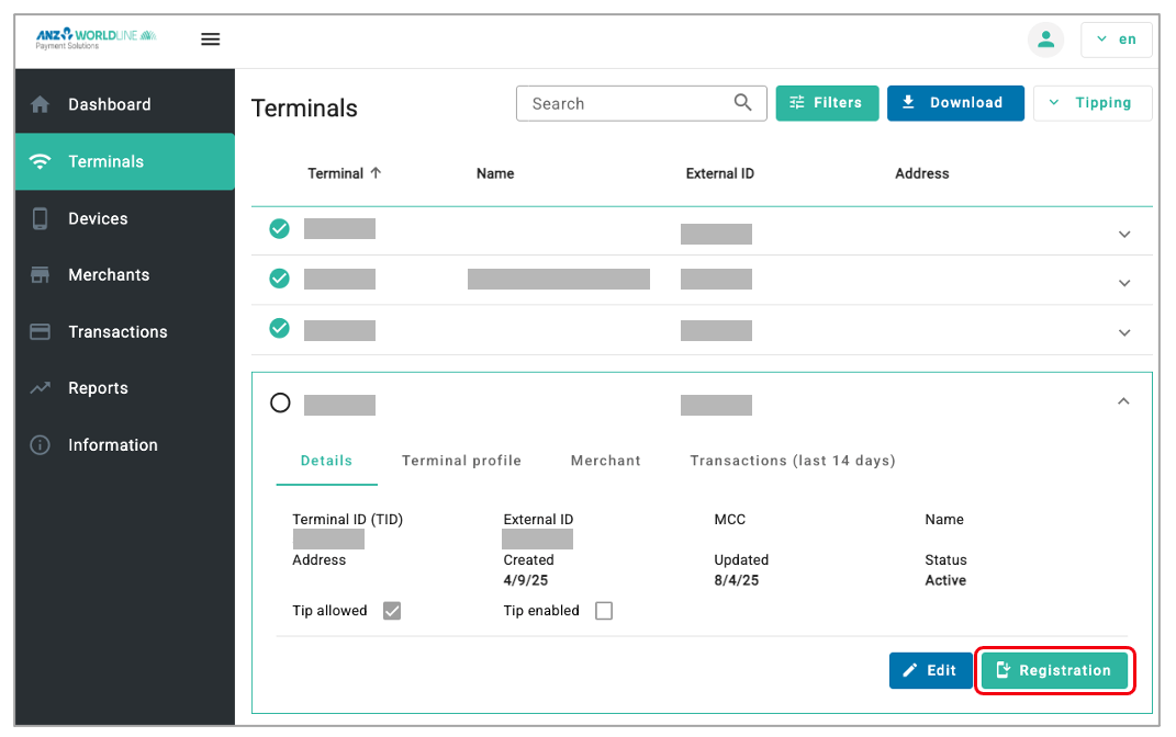 💡 Tip: If you’re registering multiple devices, click ‘Edit’ on each terminal in the portal to give it a name that helps you identify which device is which.