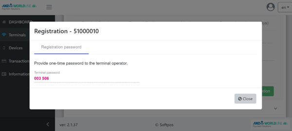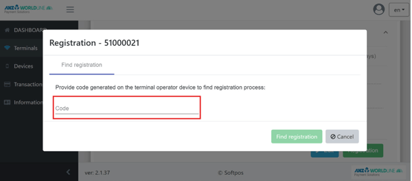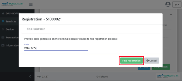 4. Select any free terminal, then click ‘Registration’