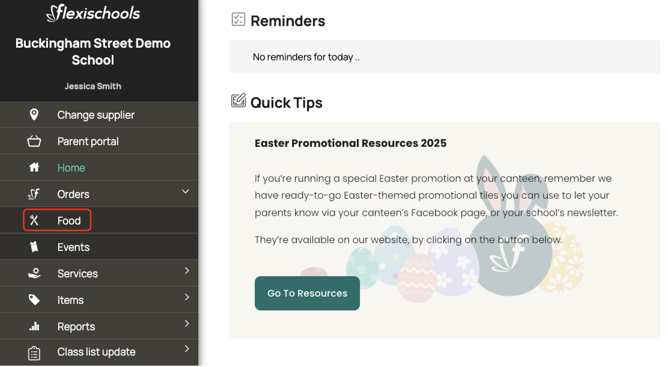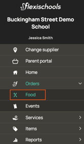 - In the Supplier Portal, click 'Orders', then 'Food' in the left-hand menu.