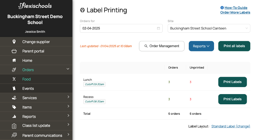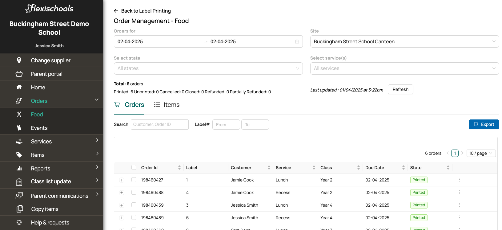 Note: once orders have been printed, they are locked and are no longer able to be cancelled by parents.
