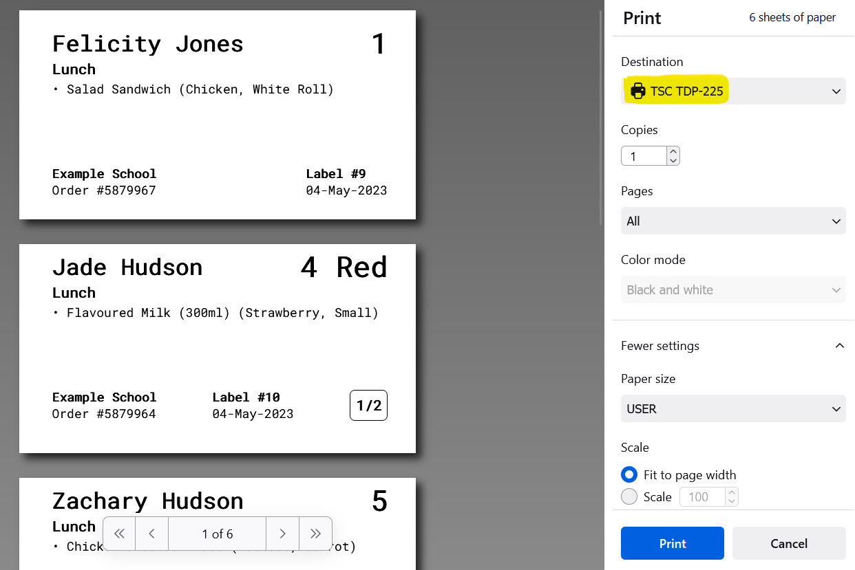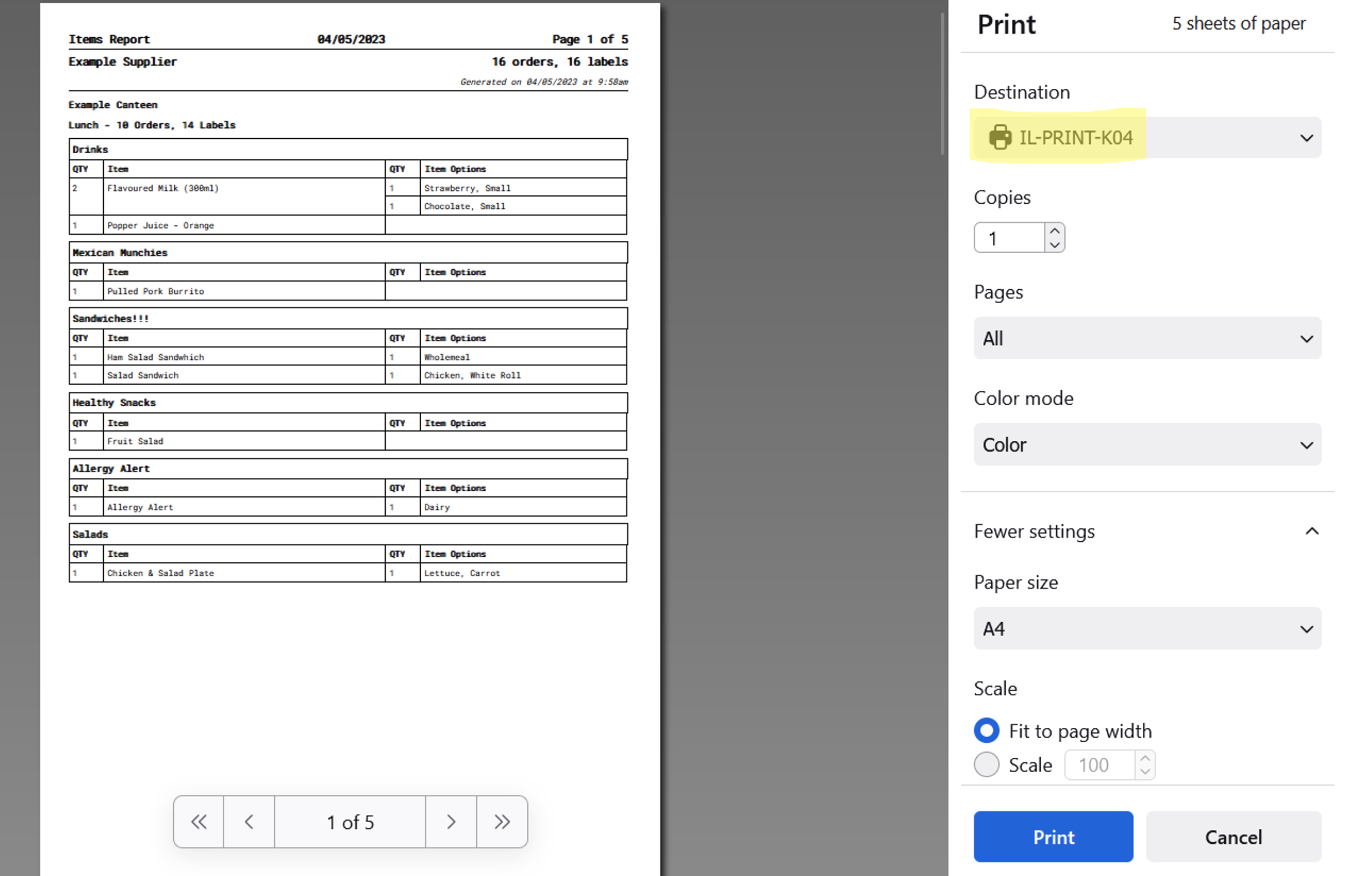 - The print preview screen will appear. Ensure your A4 printer (not your label printer) is selected as the printer destination, then click 'Print'.