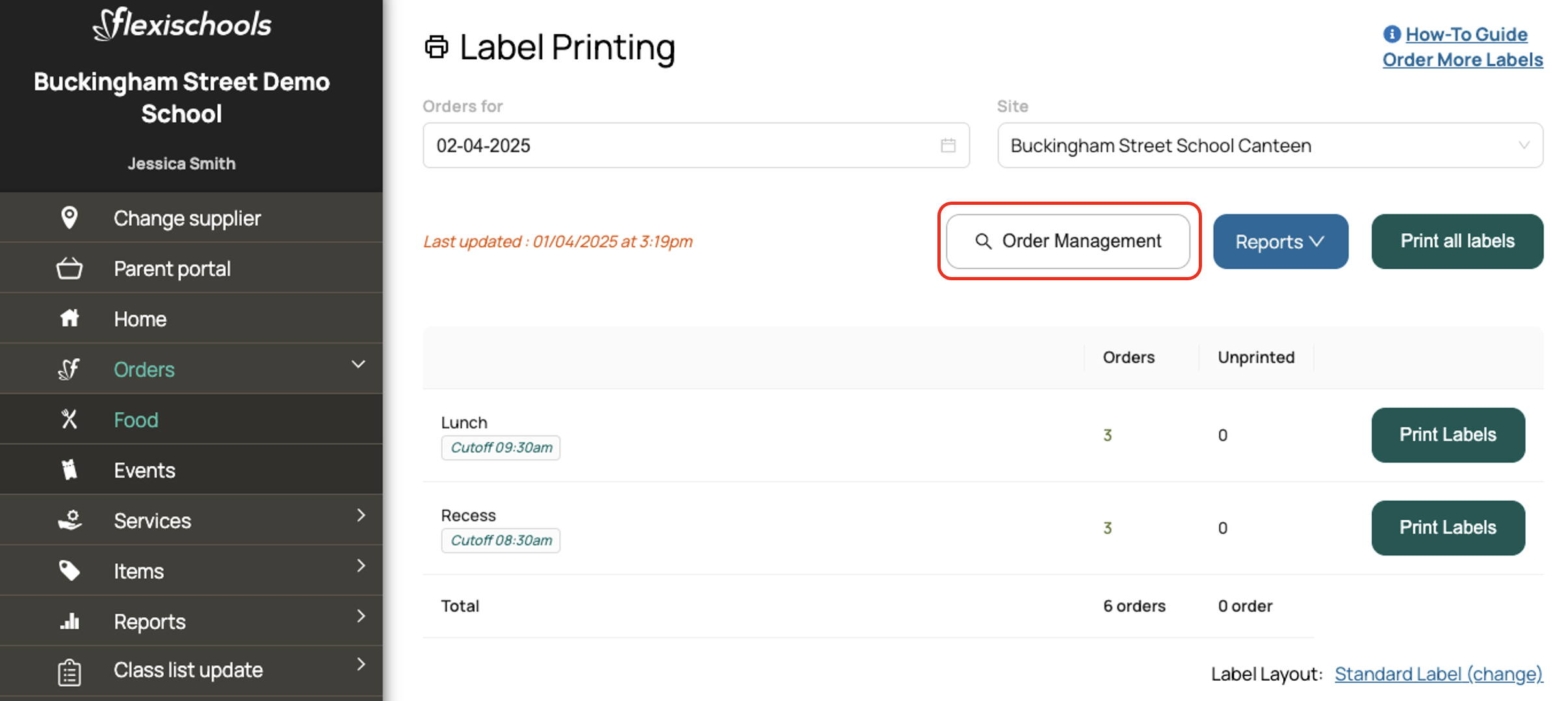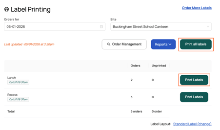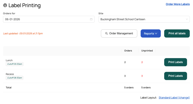 - To view your orders in more detail, click on the ‘Order Management’ button from the Label Printing page.
