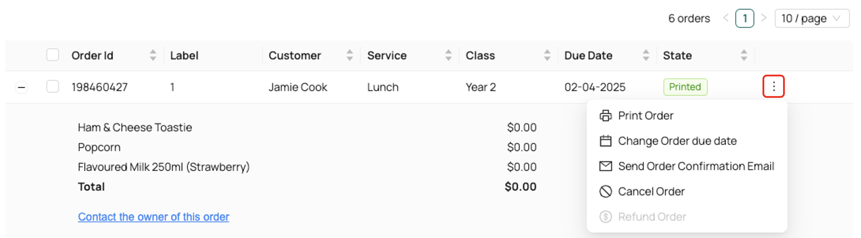 - Refund orders (only after an order has been closed at 5pm on the day it was due)