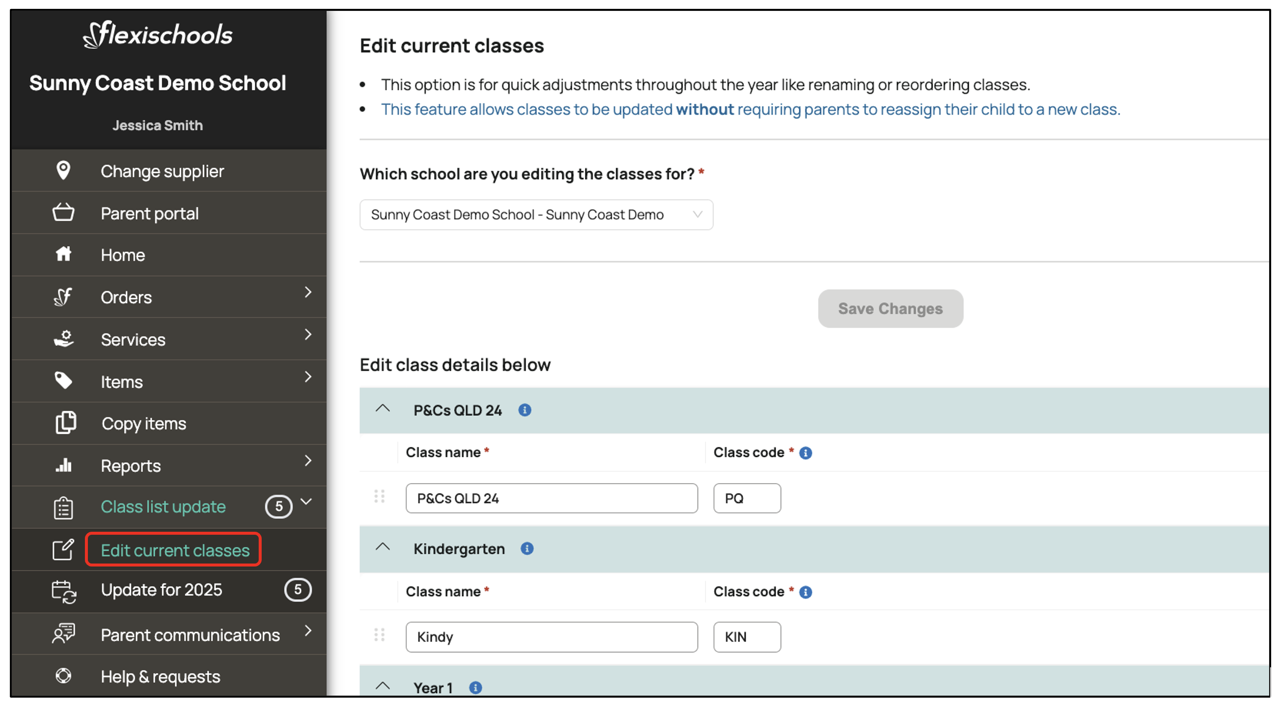 1. Log in to your Supplier Portal. Navigate to 'Class list update', then 'Edit current classes'.