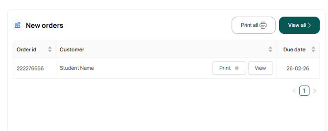 - You can print orders using the 'Print all' button to print all orders or the 'Print' button to print individual orders.