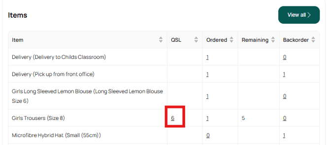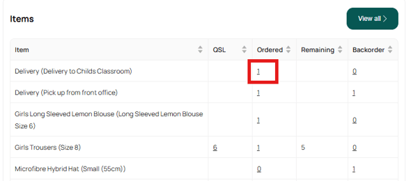 - Click the item count to view the corresponding orders