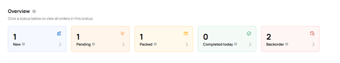 You can also click on any of the status tiles to filter to orders in the selected status.